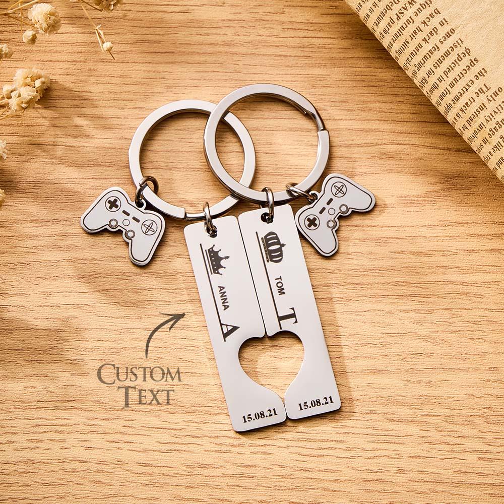 2 Personalisierte Pärchen-schlüsselanhänger Mit Eingraviertem Namen Und Datum Mit Gamepad-charm-schlüsselanhängern
