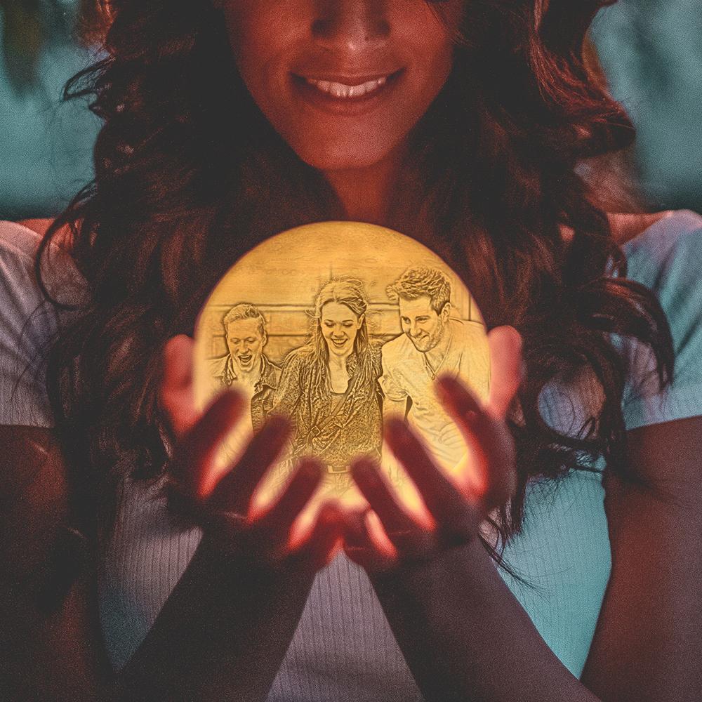 - Sie können die Mondlampe mit Ihrem Foto, Text oder Namen personalisieren.