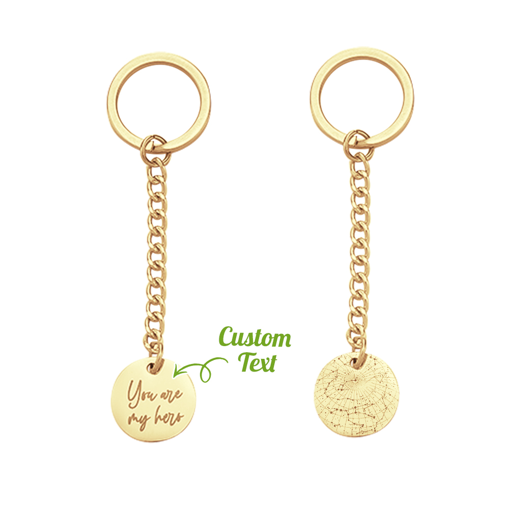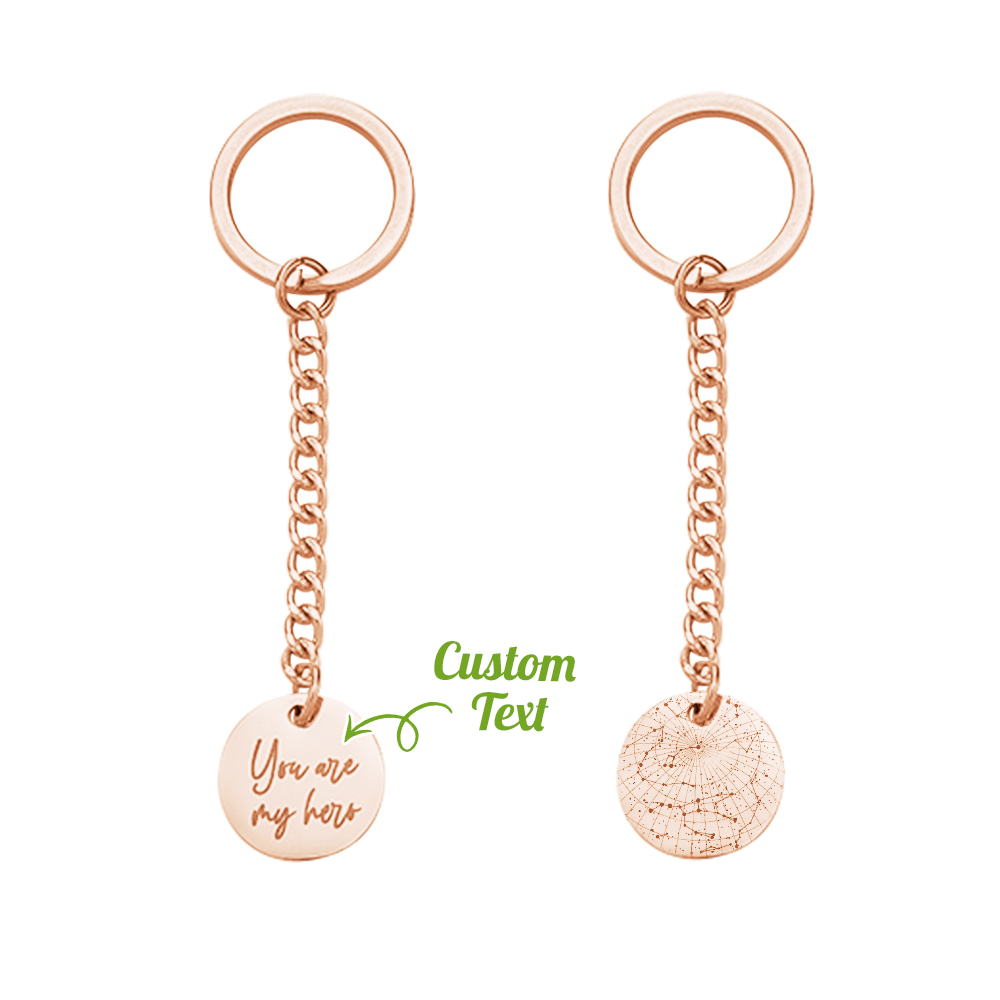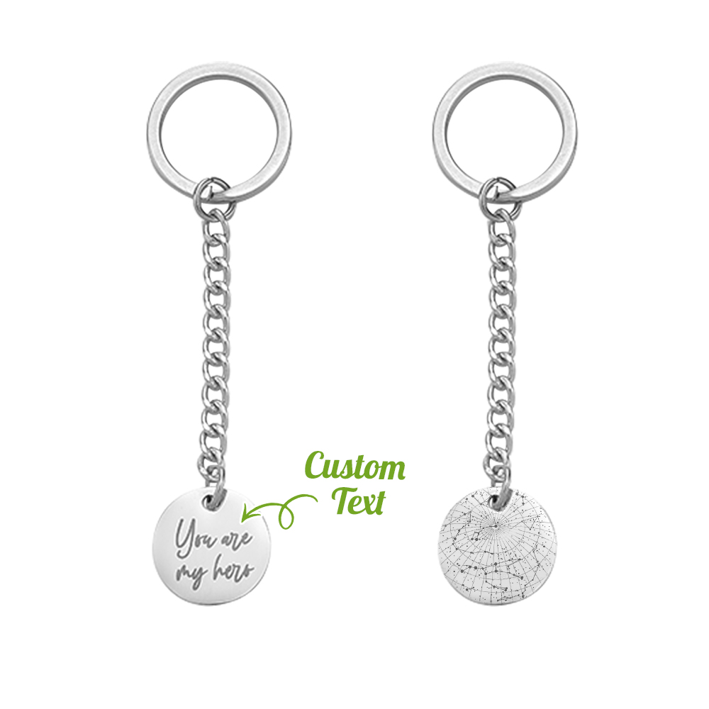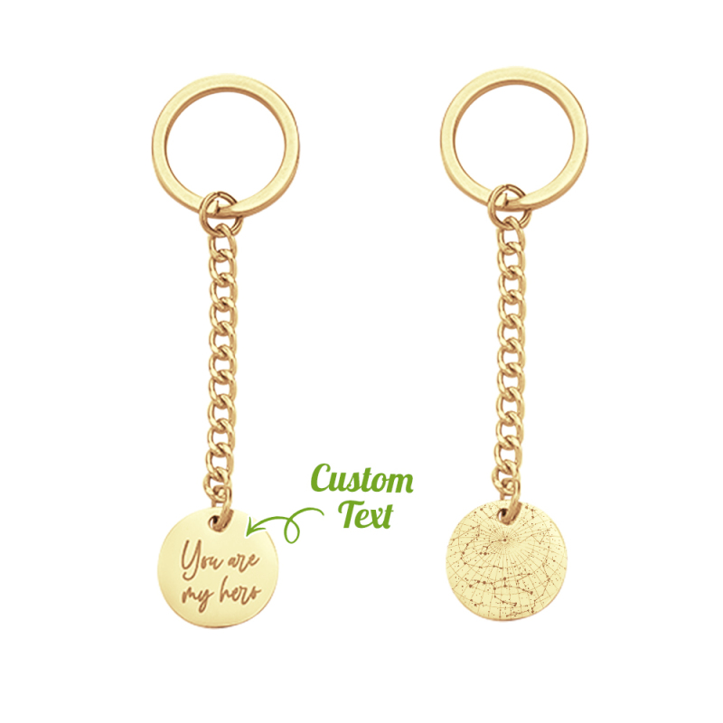 Zeigen Sie ihnen mit diesem personalisierten Schlüsselanhänger mit Sternenkarte zur Genesung, wie stolz Sie auf ihre Fortschritte sind. Diese individuell gravierte Sternenkarte wurde speziell für sie entworfen. Sie ist das perfekte drogenfreie Jubiläumsgeschenk, Geburtstagsgeschenk oder Weihnachtsgeschenk! Fügen Sie einfach das Datum und den Ort hinzu, an dem sich ihr Leben verändert hat, und unsere Designer erstellen eine Sternenkarte, die genau zeigt, wie der Himmel an diesem bestimmten Tag von diesem bestimmten Ort aus aussah. Optional können Sie diesem bedeutungsvollen Schlüsselanhänger eine noch persönlichere Note verleihen, indem Sie auf der Rückseite eine individuelle Nachricht, ein Datum oder Koordinaten hinzufügen.