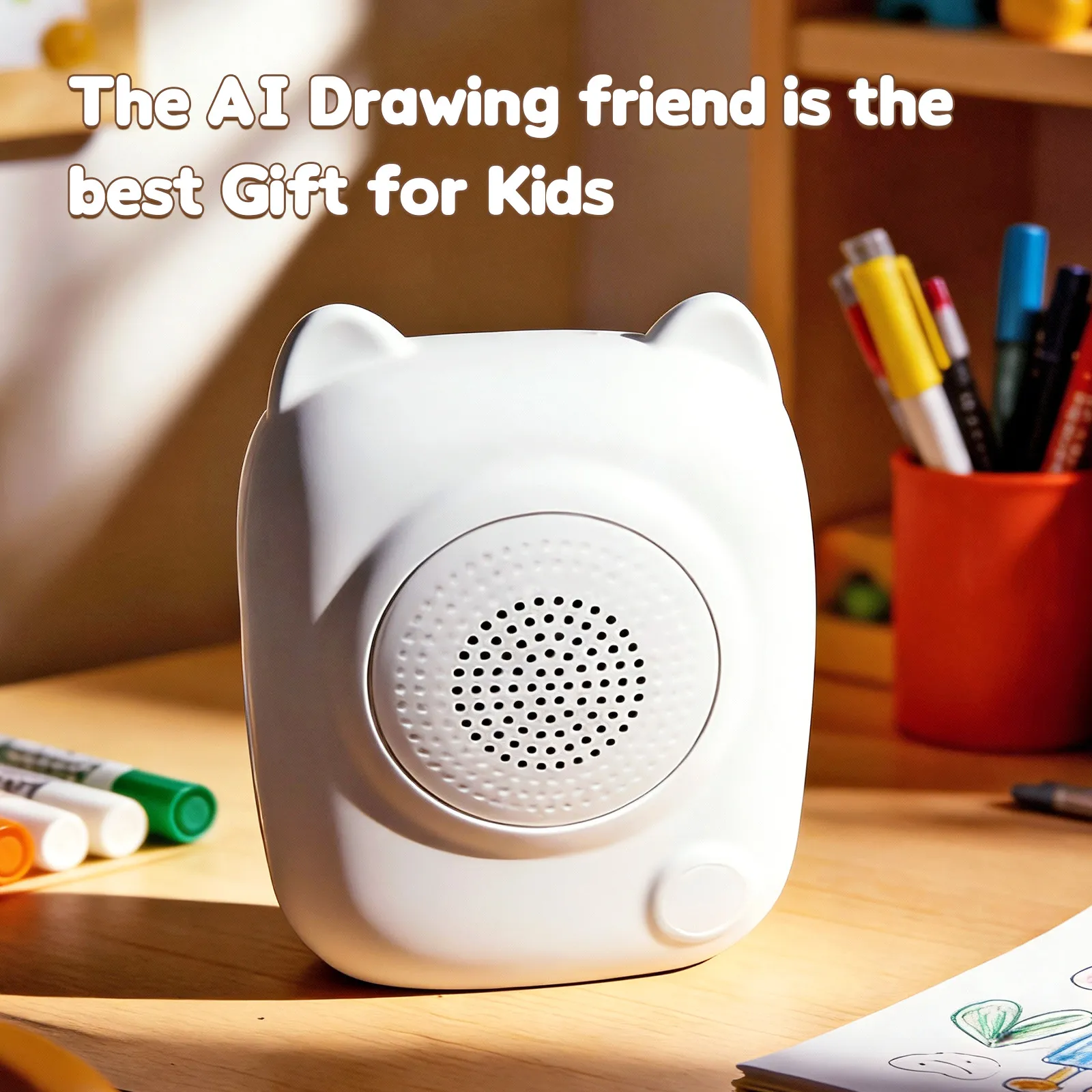 Einfach in die Hand nehmen, Ihre Idee aussprechen (z. B. „ein Regenbogeneinhorn mit glitzernden Flügeln!“) und zusehen, wie dieses kompakte, kinderfreundliche Gerät sofort einen individuellen Sticker zeichnet und druckt – ganz ohne Apps, Bildschirme oder komplizierte Schritte.