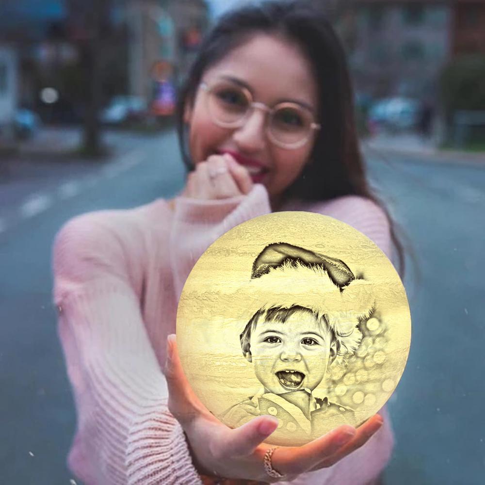 - Sie können die Mondlampe mit Ihrem Foto, Text oder Namen personalisieren.