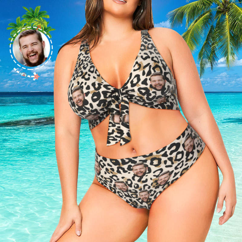 Badeanzüge Für Frauen In Übergröße Individueller Gesichtsbikini – Leopardenmuster