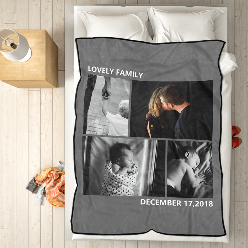 Kuscheldecke Beileidsgeschenk Personalisierte Fotodecke mit 4 Fotos