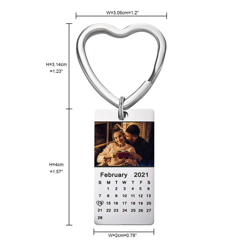 Es gibt einen besonderen Tag, an den Sie sich erinnern und feiern möchten. Jetzt können wir für Sie den Kalender und ein Foto auf diesen schönen Schlüsselanhänger gravieren.