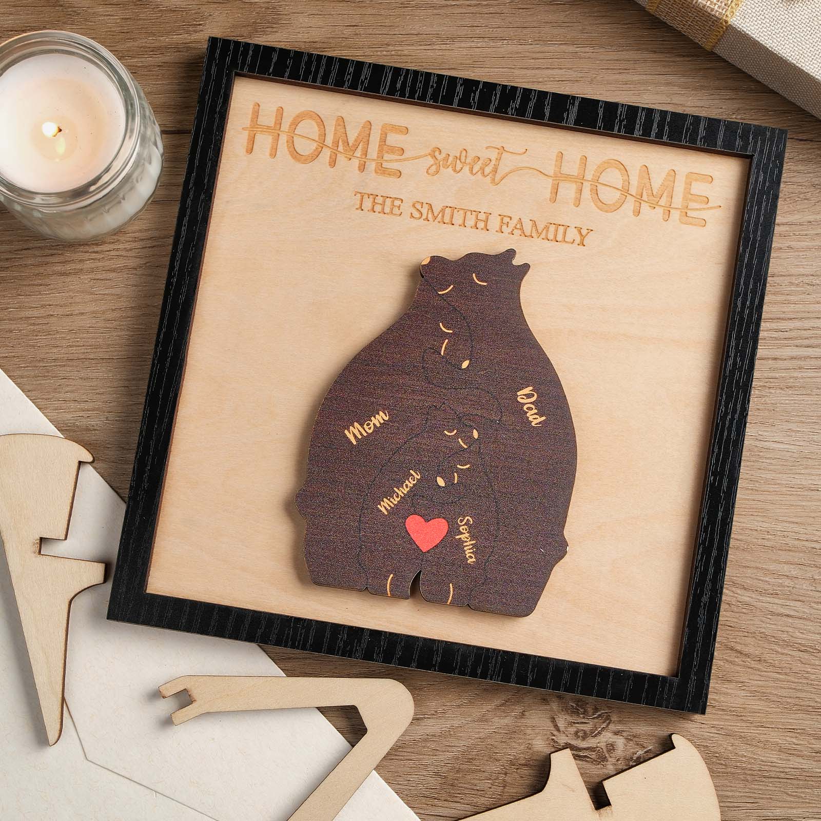 Benutzerdefinierte Name Bär Familie Puzzle Holzrahmen Personalisierte Holz Home Dekorationen Weihnachtsgeschenke für die Familie
