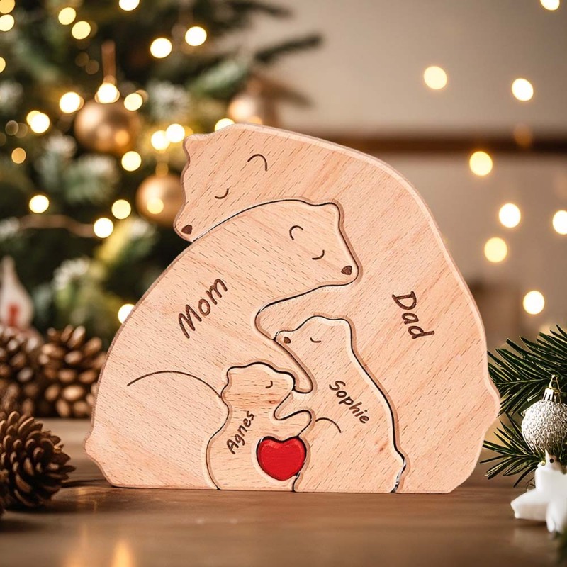 Benutzerdefinierte Namen Holz Bären Familie Block Puzzle Home Decor Weihnachtsgeschenke für die Familie