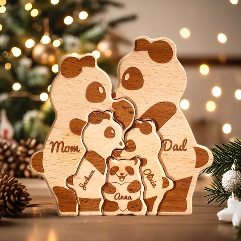 Benutzerdefinierte Namen Holz Pandas Familie Block Puzzle Home Decor Weihnachtsgeschenke für die Familie