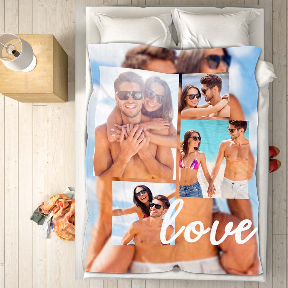 Benutzerdefinierte Fotocollage-blanet-bokeh-fotohintergrunddecke, Personalisierte Bildcollage-decke, Geschenke Für Die Familie