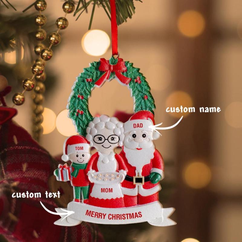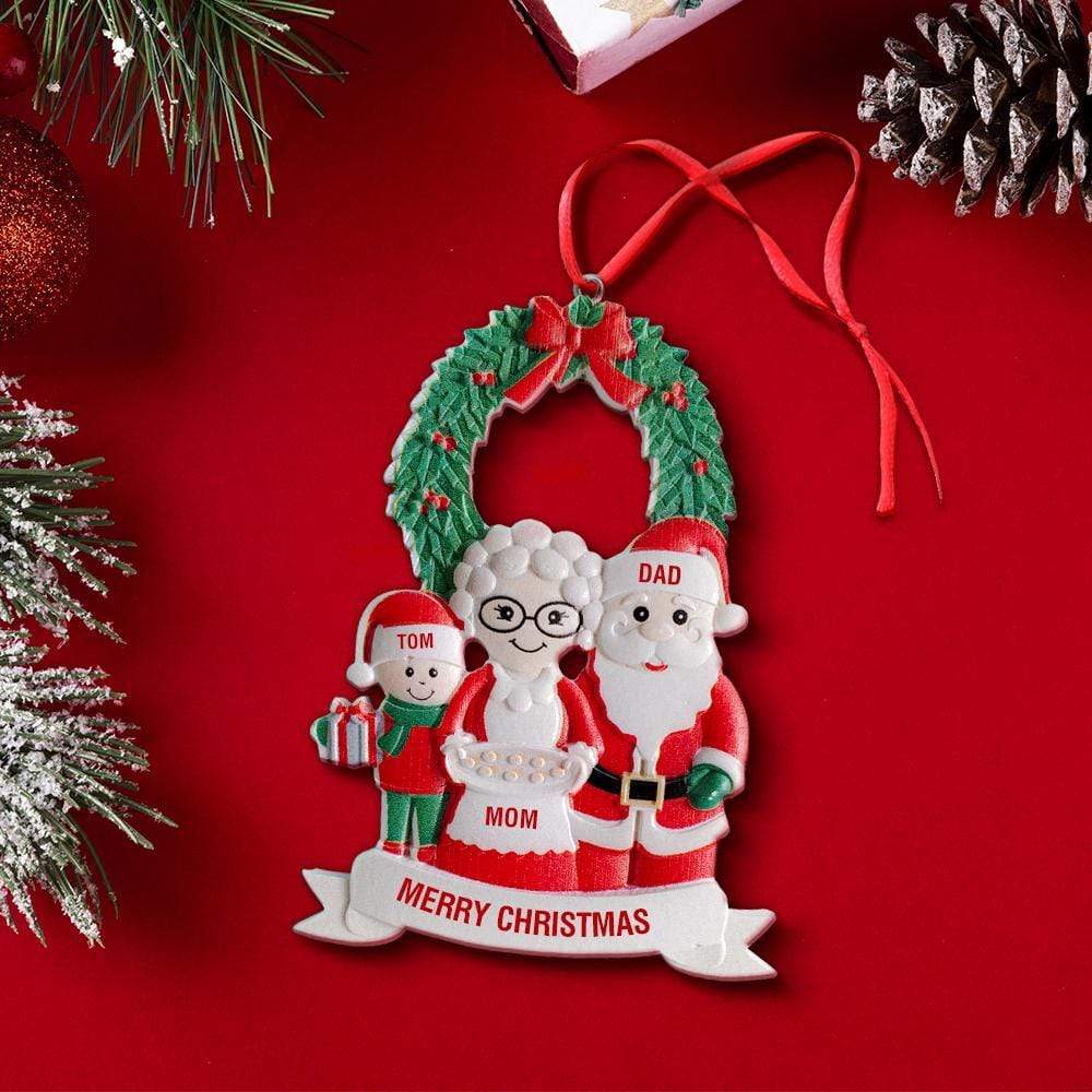Christbaumschmuck Personalisierte mit drei Namen Weihnachtsmann Ornament Weihnachtsgeschenke für Familie