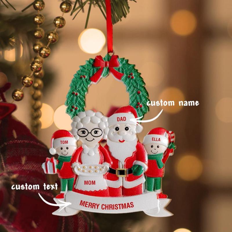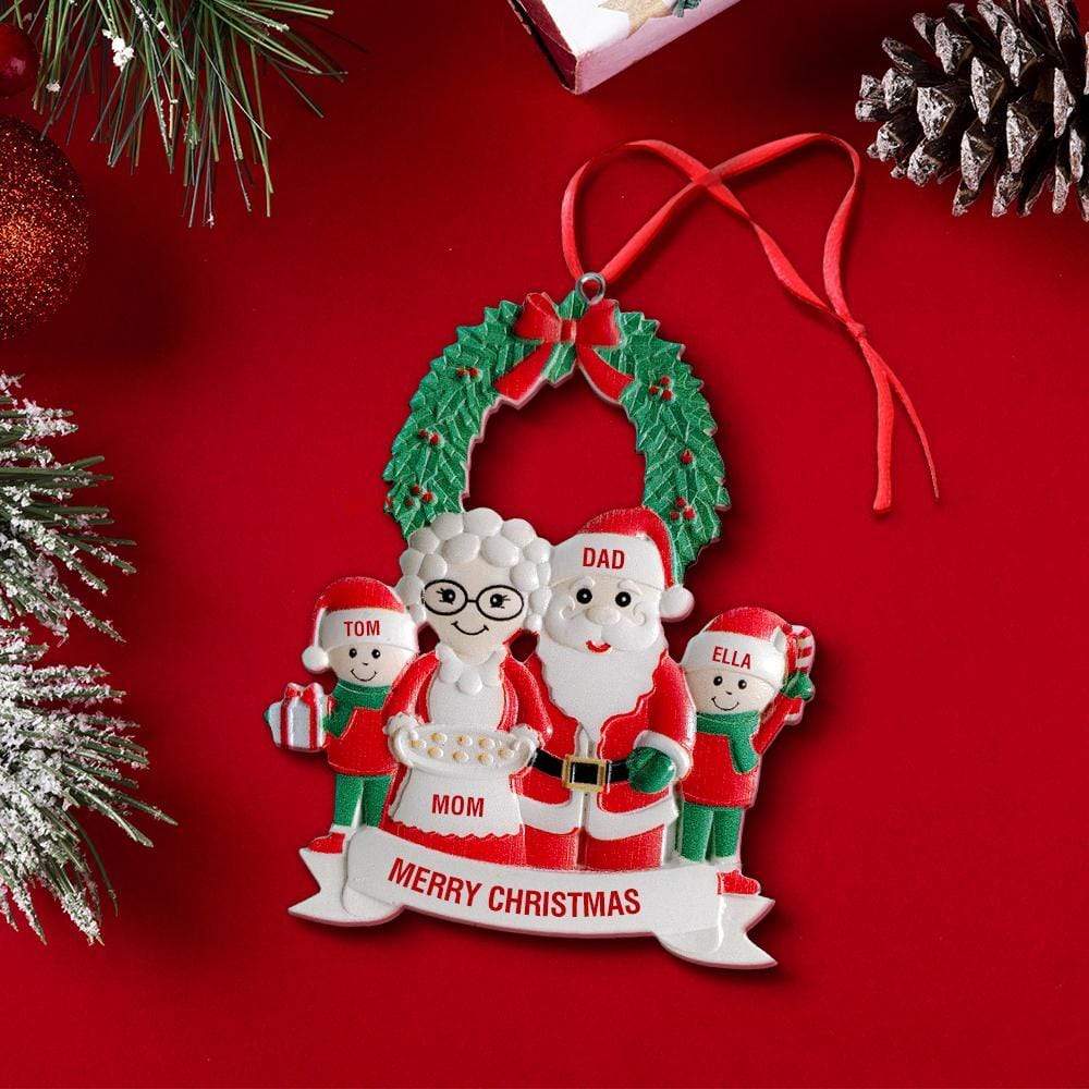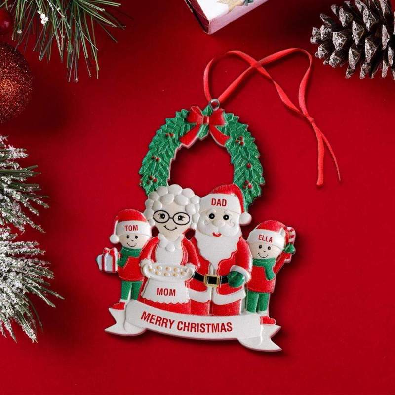 Christbaumschmuck Personalisierte mit vier Namen Weihnachtsmann Ornament Weihnachtsgeschenke für Familie