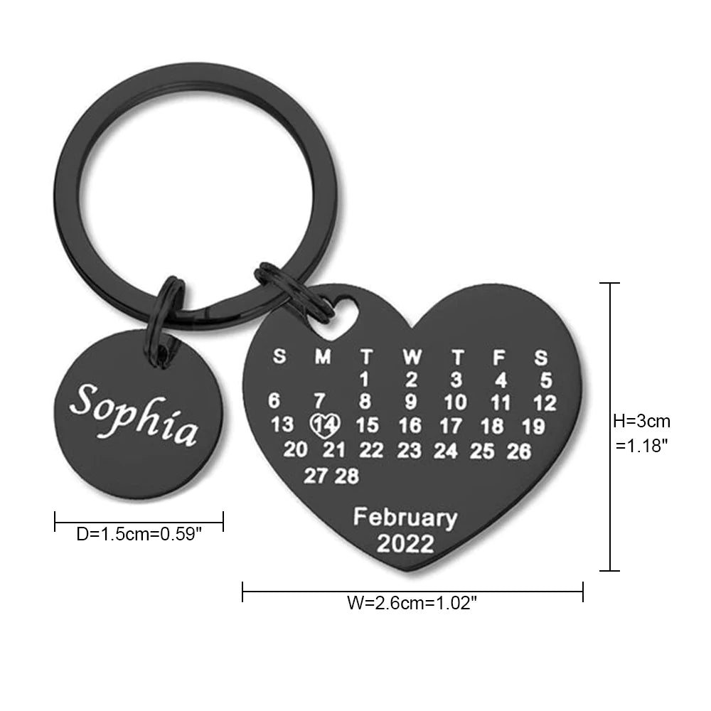 Personalisierter Schlüsselanhänger Herz Kalender mit Namen Gravur Jahrestagsgeschenk für Liebhaber