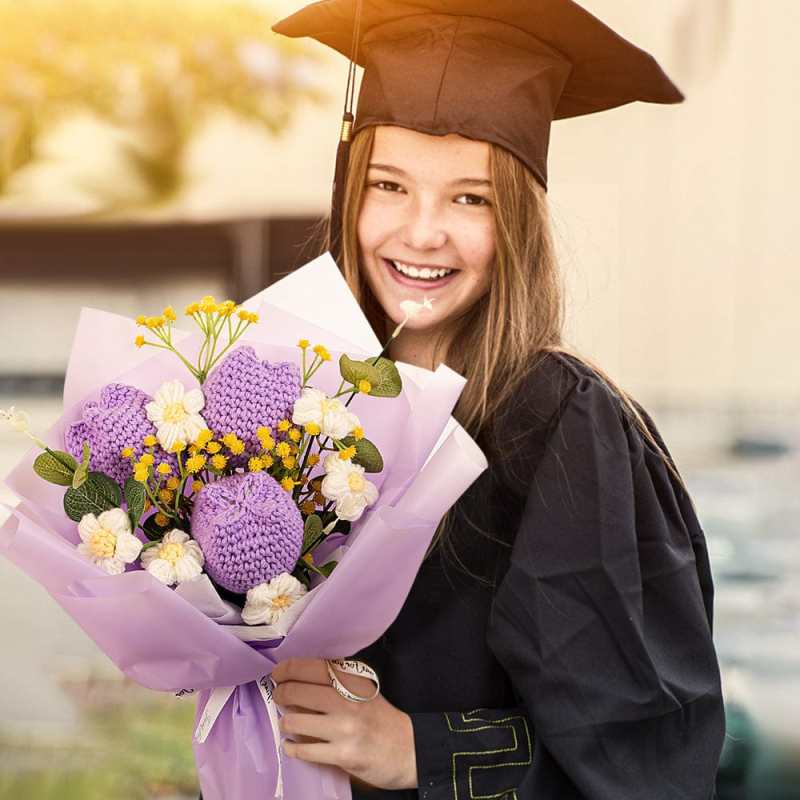 Gehäkelter Blumenstrauß, Handgemachter Gestrickter Tulpenstrauß, Abschlussgeschenk Für Sie