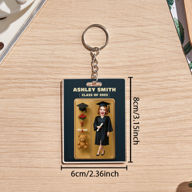 Anpassbarer Kopf Benutzerdefiniertes Actionfiguren-paket Mit 3d-effekt, Verpackung Im Spielzeugbox-stil, Kunstgeschenk, Personalisierter 2D-Druck Acryl-schlüsselanhänger, Geschenk Für Absolventen