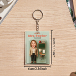 Anpassbarer Kopf Benutzerdefinierte 3d-effekt Actionfigur Pack Verpackung Spielzeugbox Stil Kunst Geschenk Personalisierte 2D-Druck Acryl Schlüsselanhänger Geschenk Für Lehrer