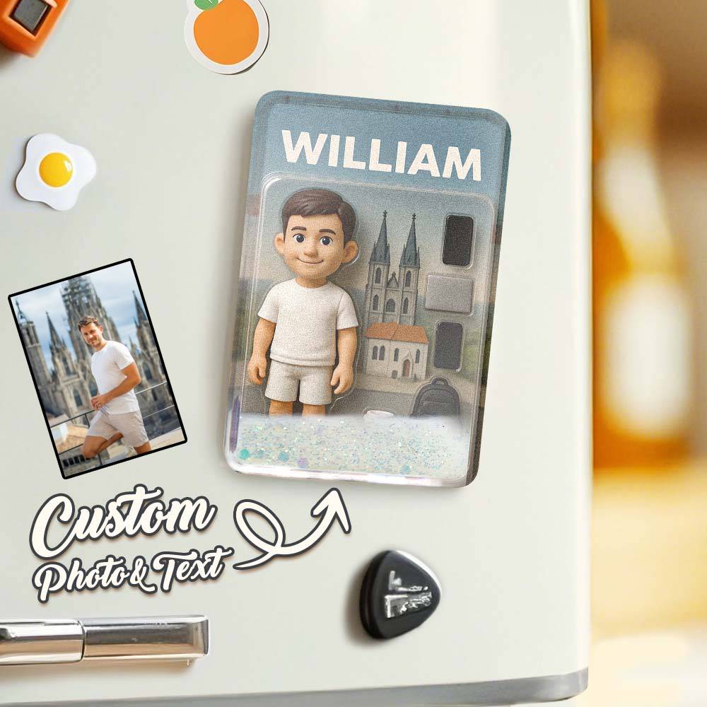 Benutzerdefinierter 3d-effekt Actionfiguren-pack Verpackung Spielzeugbox-stil Kunstgeschenk Personalisierter Quicksand-kühlschrankmagnet Geschenk Für Vater