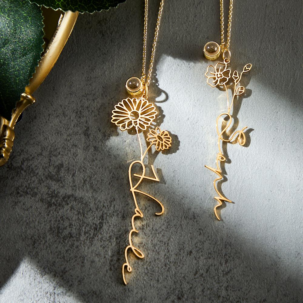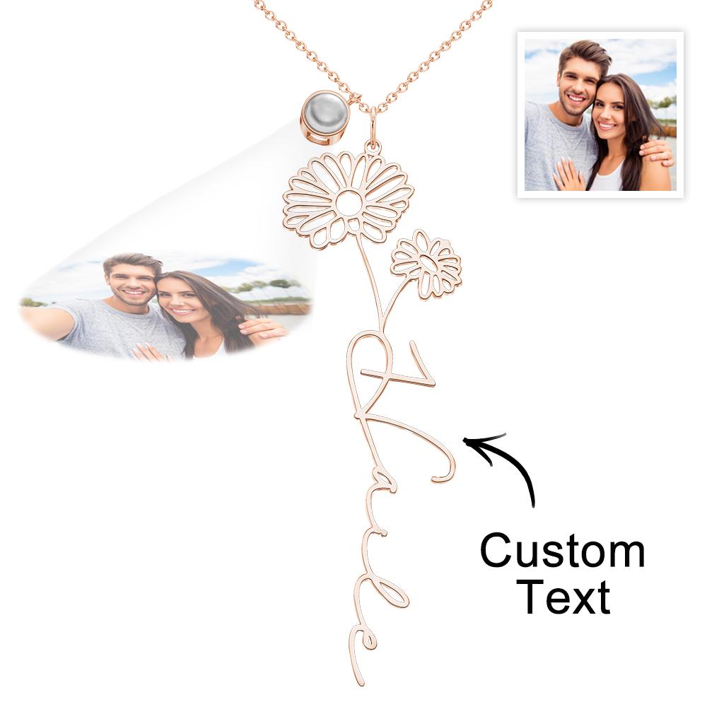 Kundenspezifische Geburts-blumen-foto-projektions-namenshalsketten-kreatives Geschenk Für Frauen