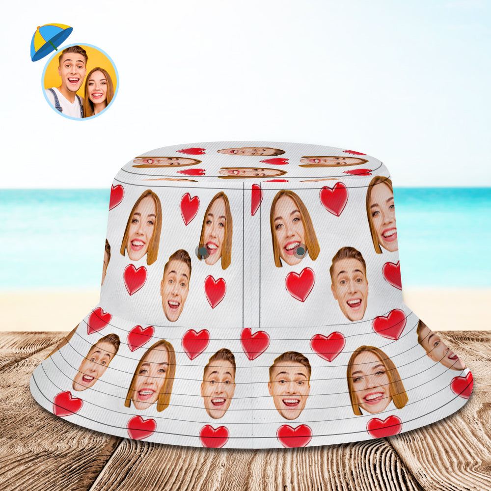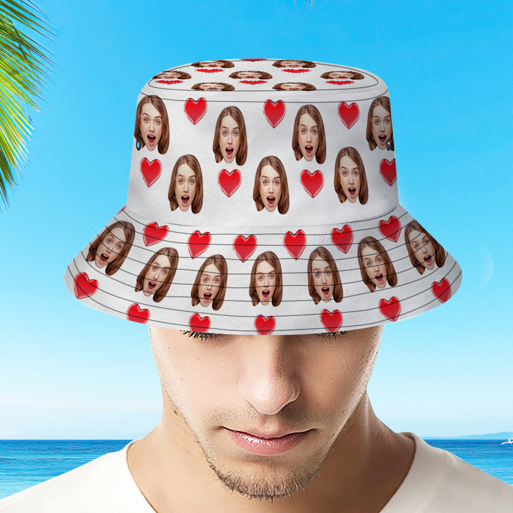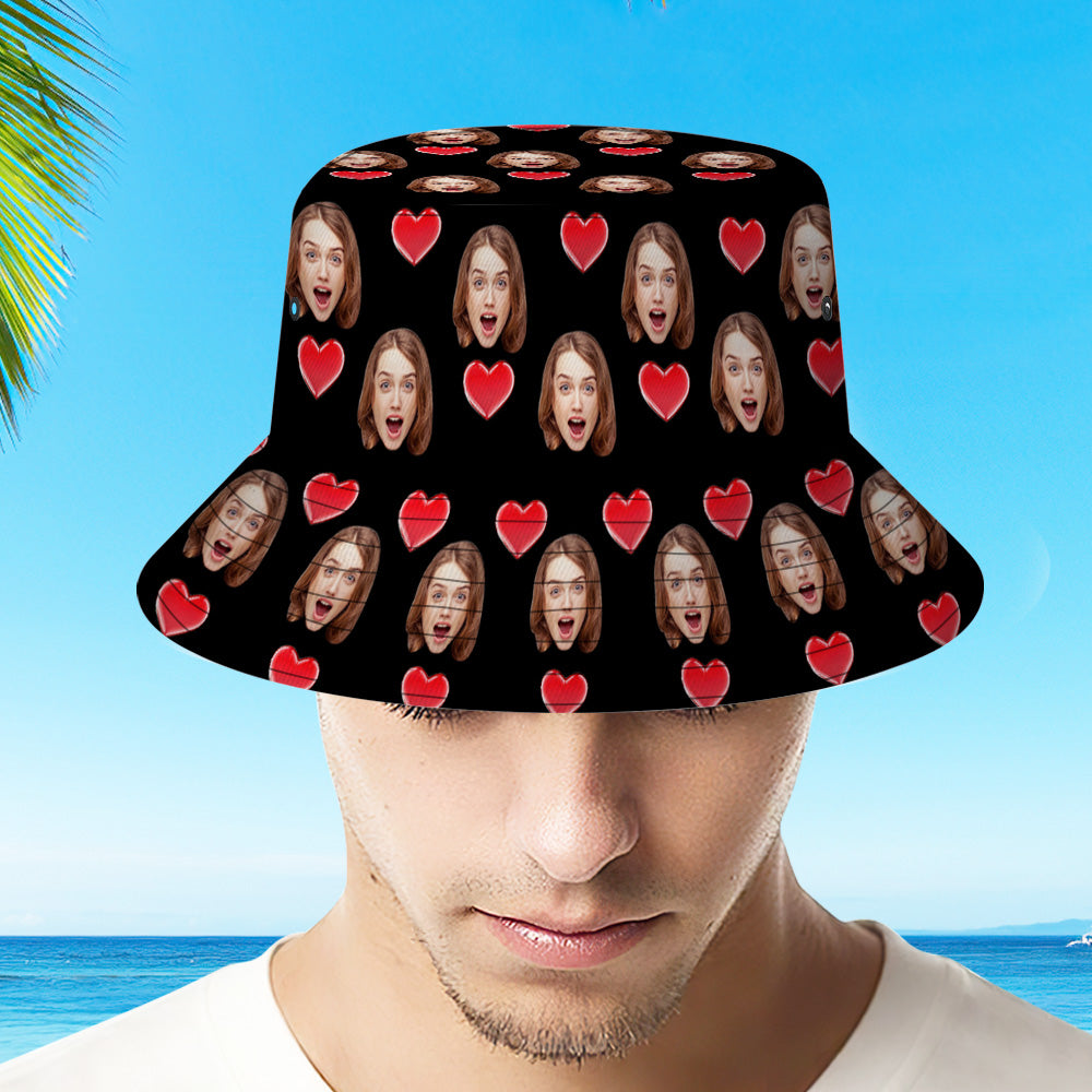 Benutzerdefinierte Bucket Hat Personalisieren Gesicht Herz Unisex Bucket Hat Wide Brim Outdoor Sommer Cap