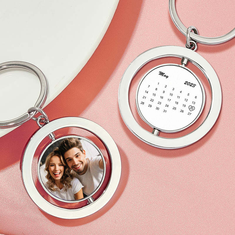 Benutzerdefinierter Kalender-schlüsselanhänger, Personalisierter Drehbarer Doppelseitiger Schlüsselanhänger, Jubiläumsgeschenk