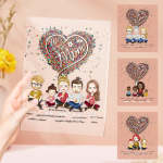 Diese benutzerdefinierte Familien-Clip-Art-Cartoon-Plakette mit personalisiertem Namen eignet sich perfekt für die Gestaltung einer einzigartigen, einzigartigen Dekoration oder eines Muttertagsgeschenks. Bringen Sie bis zu 5 Familienmitglieder auf die Tafel und schaffen Sie ein personalisiertes Kunstwerk. Sie können zwischen zwei Designs für Hintergründe und Weihnachtszitate wählen.