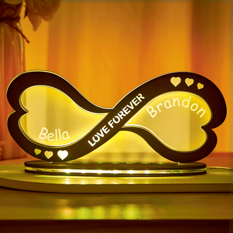 Benutzerdefinierte Paar Namen Acryl Lampe Home Decor Personalisierte Unendlichkeit Symbol Holz Nachtlicht Jahrestagsgeschenke