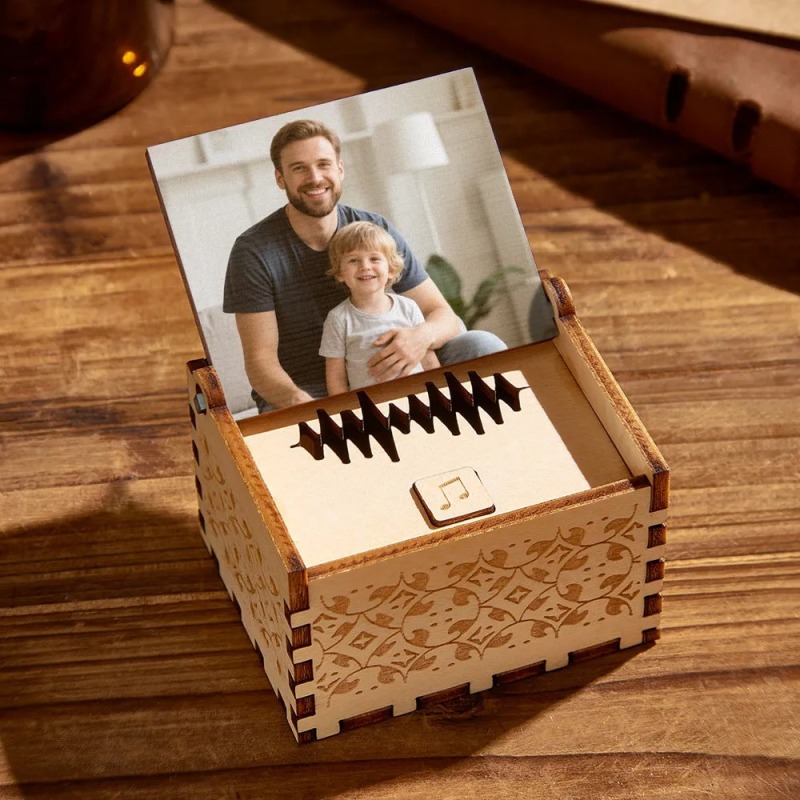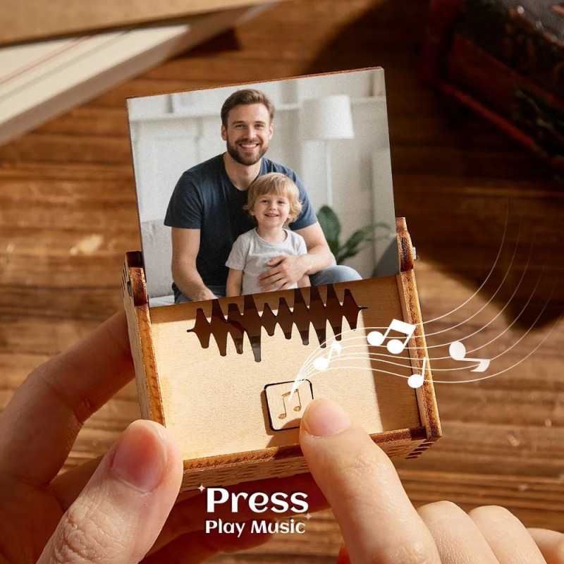 Individuell Gestaltbare Digitale Spieluhr – Jede Melodie Oder Stimme Wählbar – Personalisierte Spieluhr Aus Holz Mit Foto Und Text – Vatertagsgeschenk