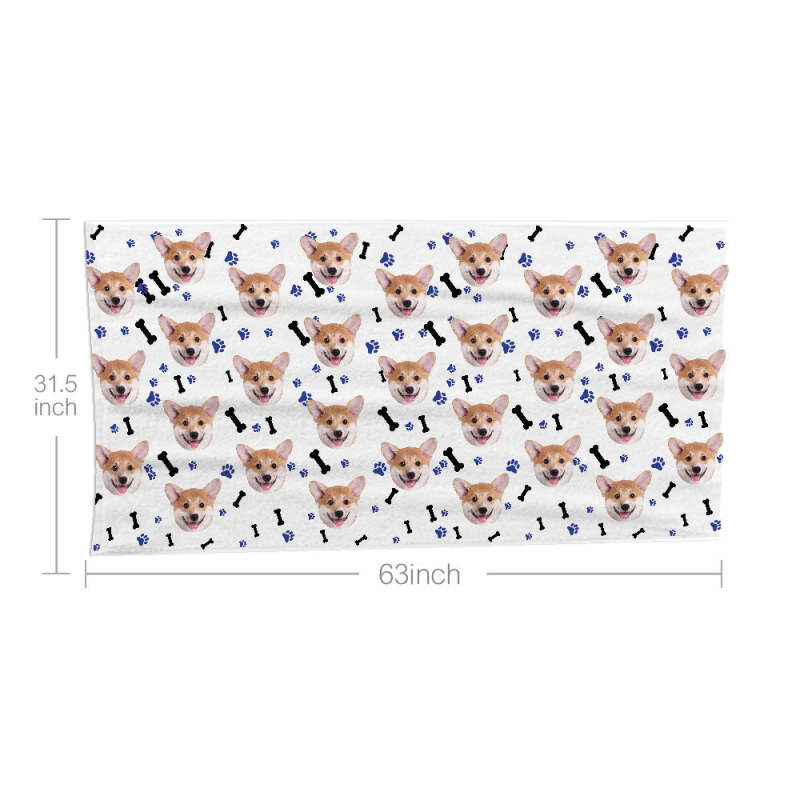 Personalisiertes Handtuch Mit Hundegesichtern, Pfoten Und Knochen, Personalisiertes Fotohandtuch, Lustiges Geschenk