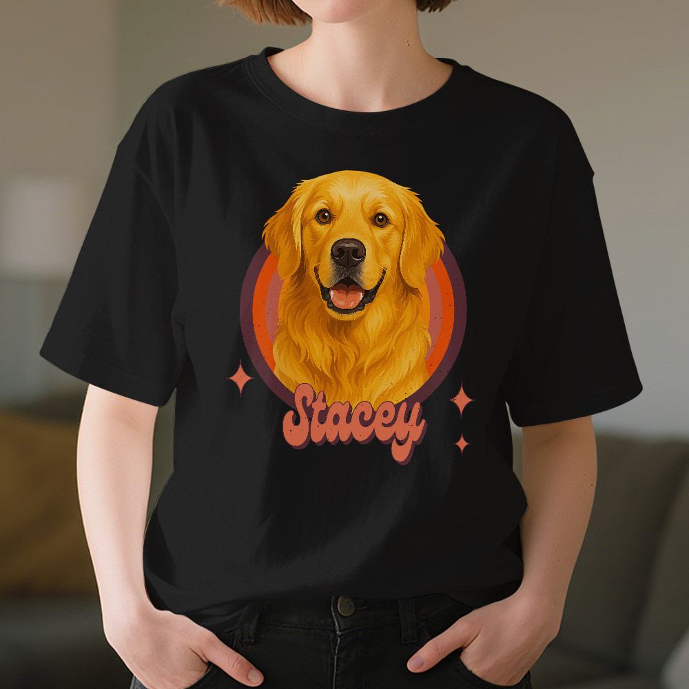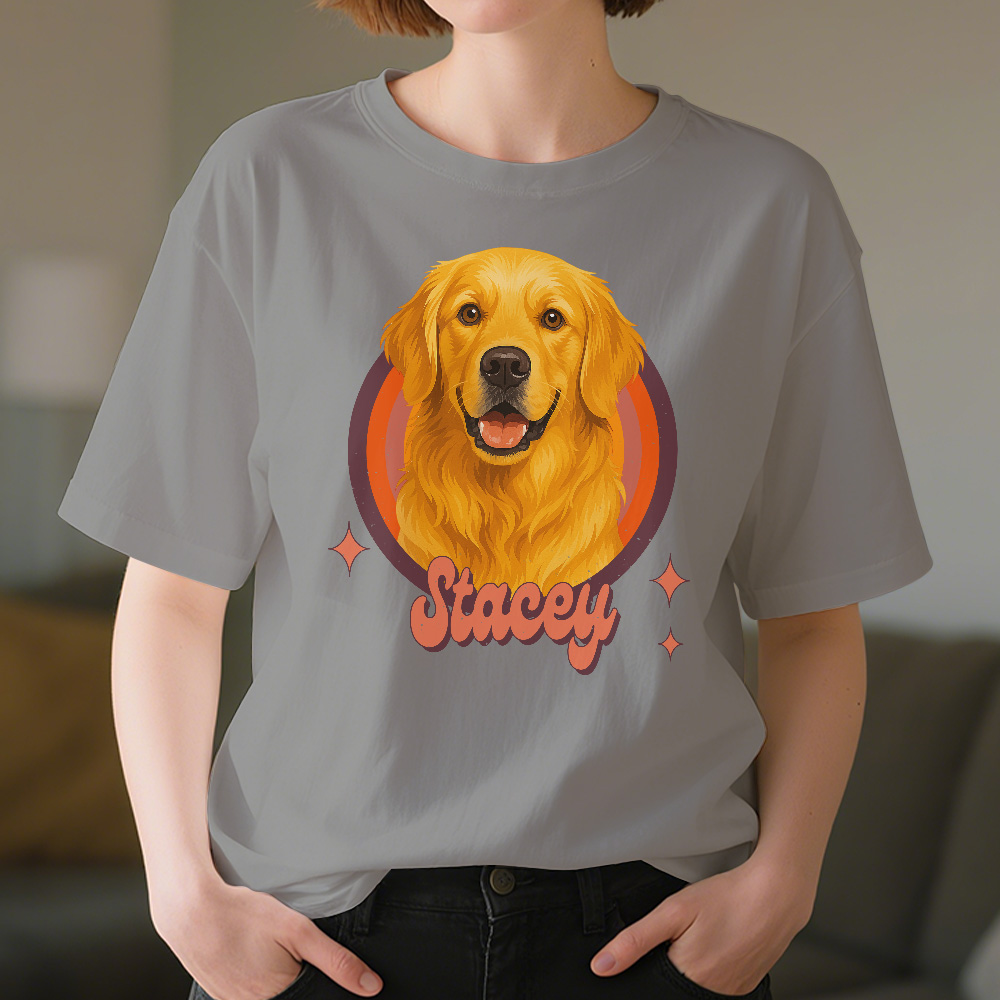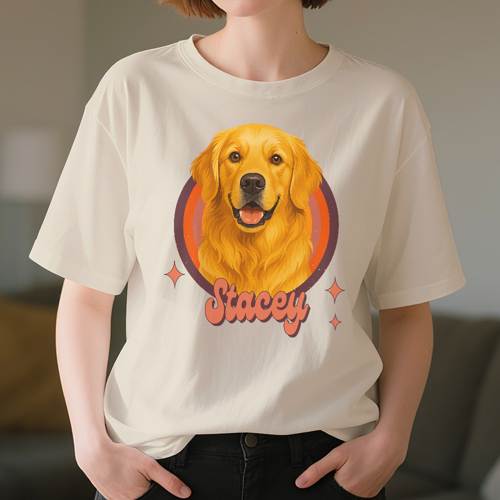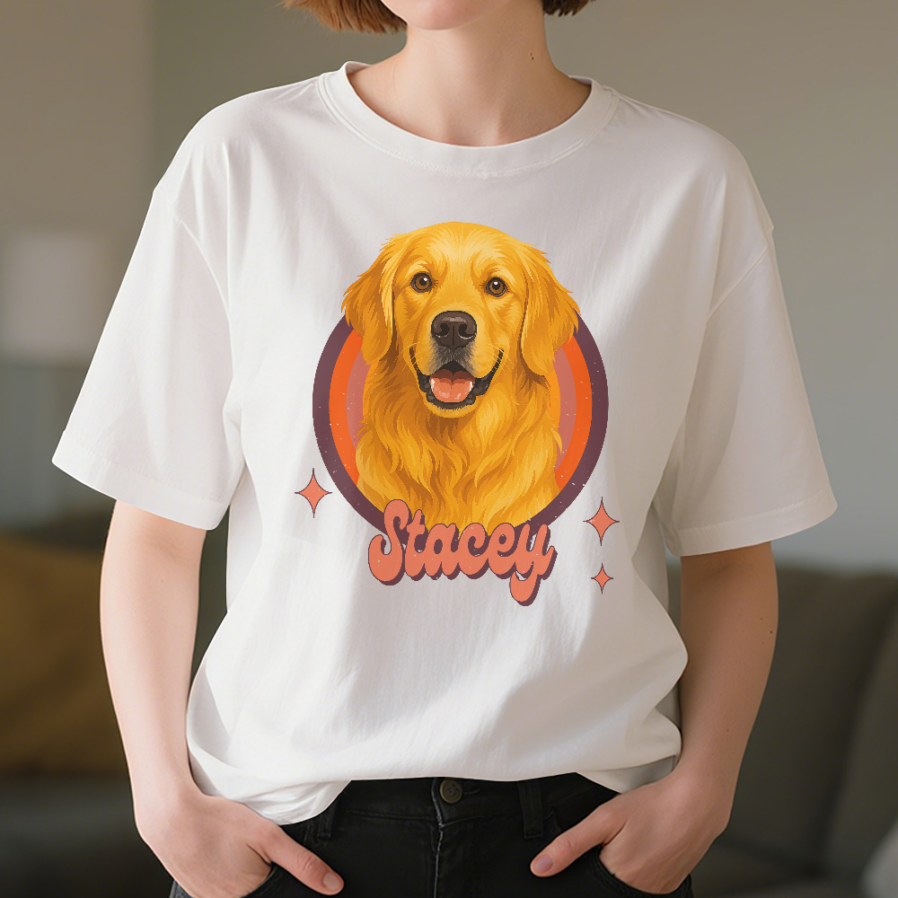 T-shirt Mit Individuellem Hundeporträt, Personalisiertem Foto Und Namen, Vintage-retro-haustier-shirt
