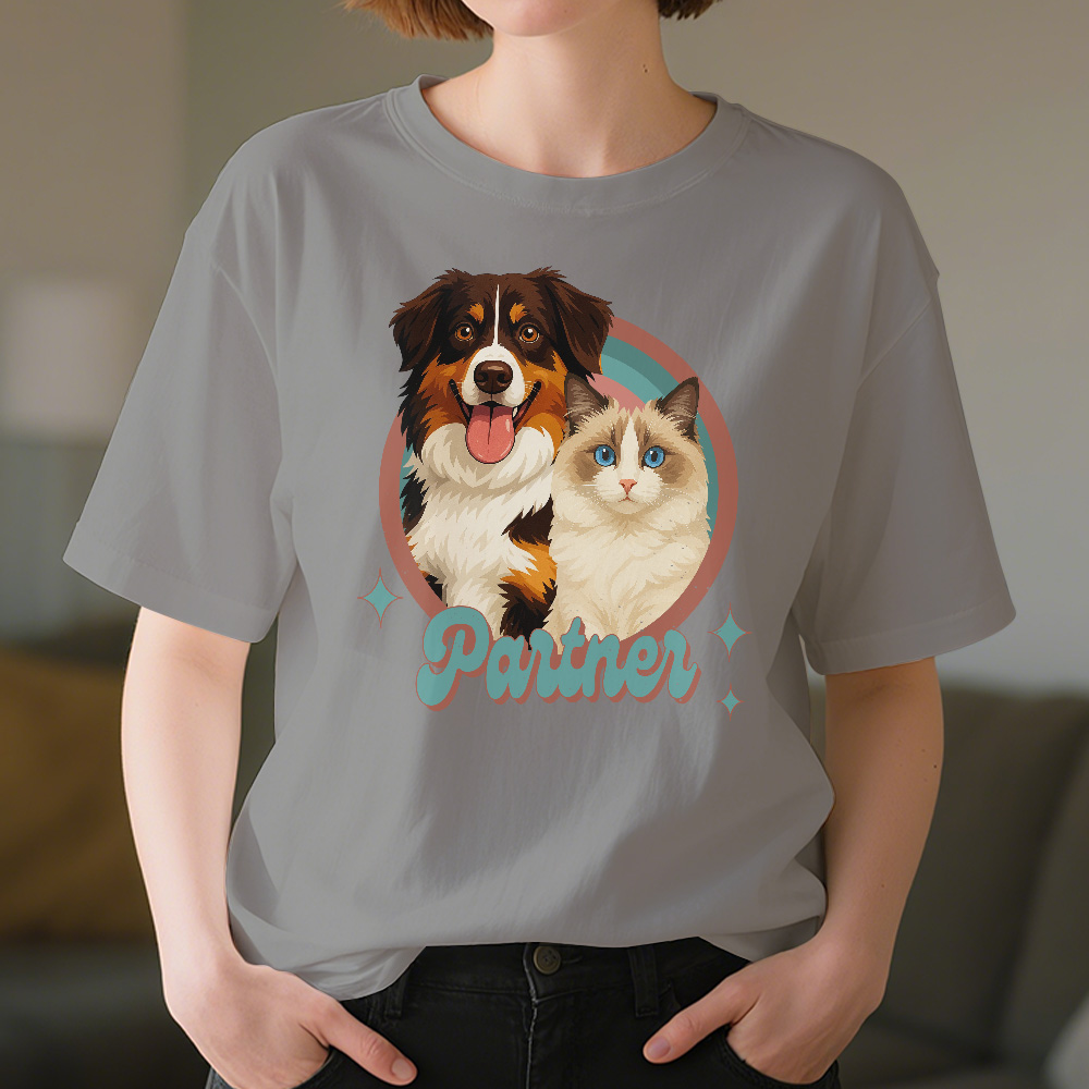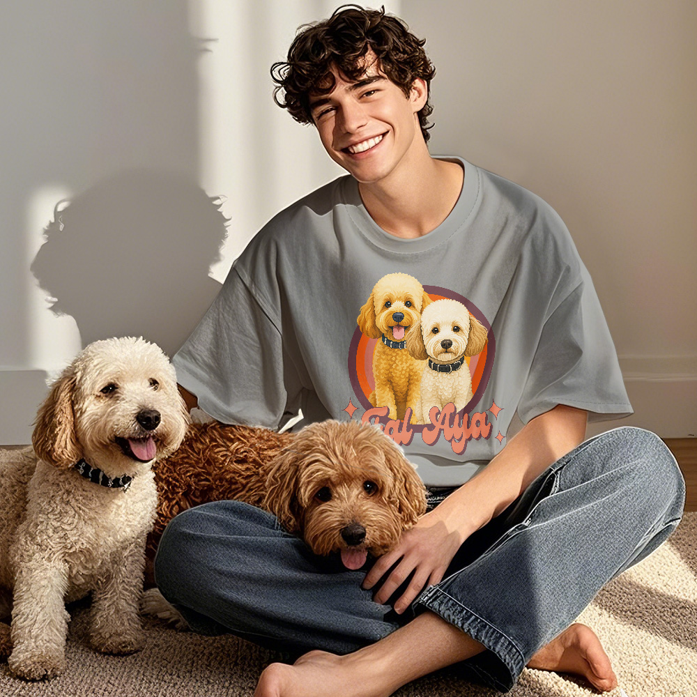 Zeigen Sie Ihren vierbeinigen Freund stilvoll mit unserem individuellen Vintage-Retro-Haustier-T-Shirt! Dieses einzigartige Shirt können Sie mit dem Foto und Namen Ihres Haustiers personalisieren und so eine ganz besondere Erinnerung an Ihren geliebten Begleiter schaffen.