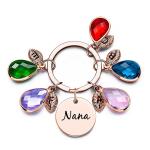 Dies ist ein wunderschöner, individuell gestalteter Schlüsselanhänger mit Geburtsstein und Gravur. Es gibt drei Farben Gold/Silber/Roségold auf dem Regal, und die Anzahl der Blätter und Geburtssteine ist entsprechend. Lassen Sie Ihren eigenen modischen Schlüsselanhänger individuell gestalten!