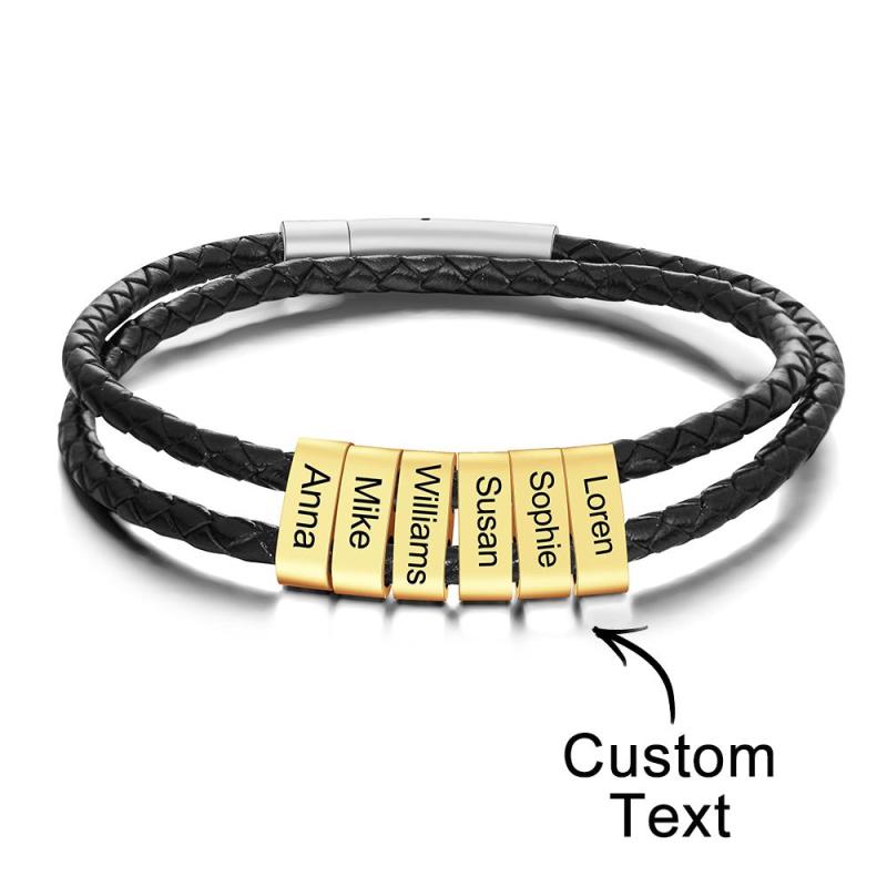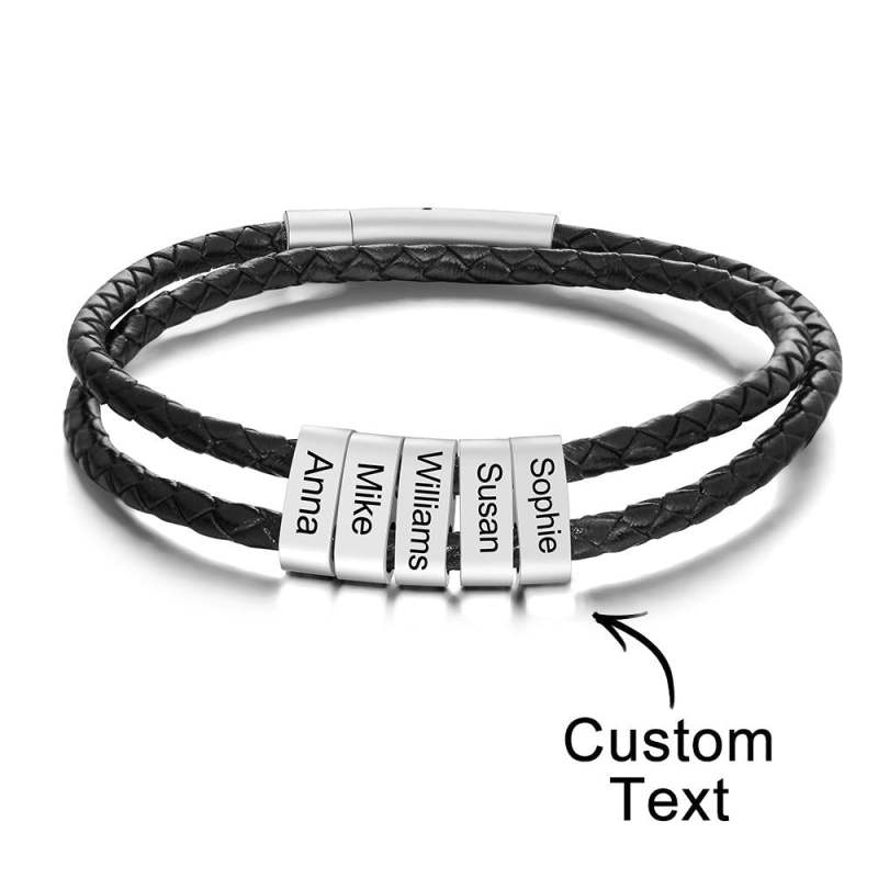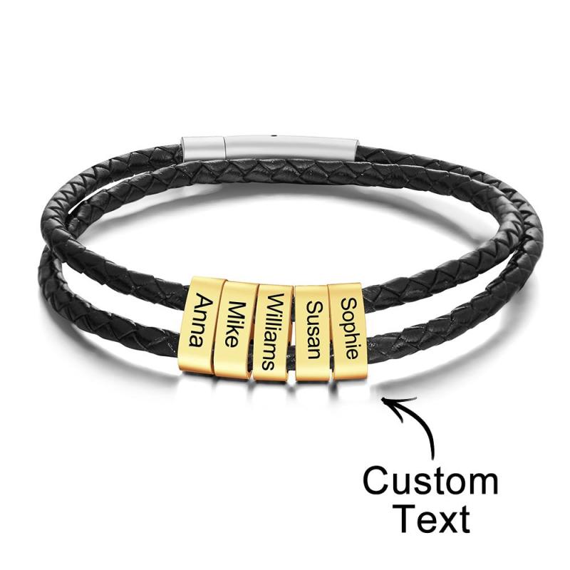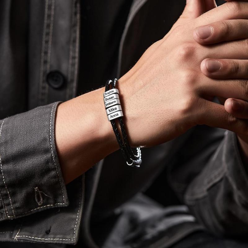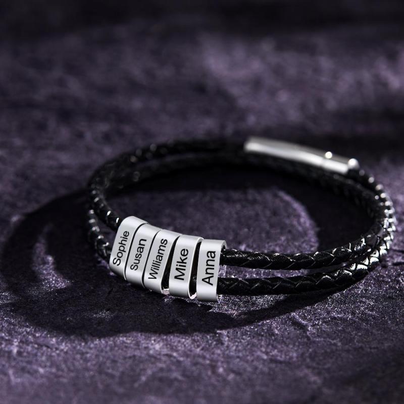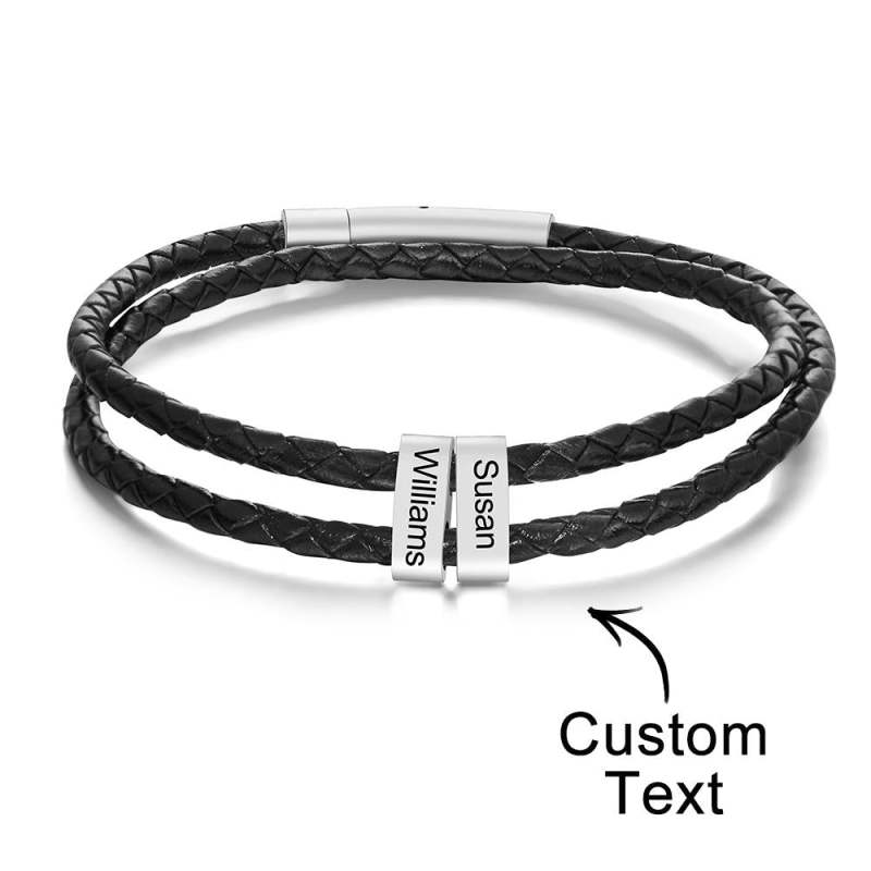 Personalisiertes Armband mit Gravur Perlen Geflochtenes Leder Geschenke für Männer