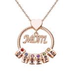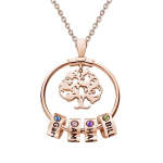 Personalisierte Halskette mit eingravierten Namen und individuellen Geburtssteinen der einzelnen Familienmitglieder.