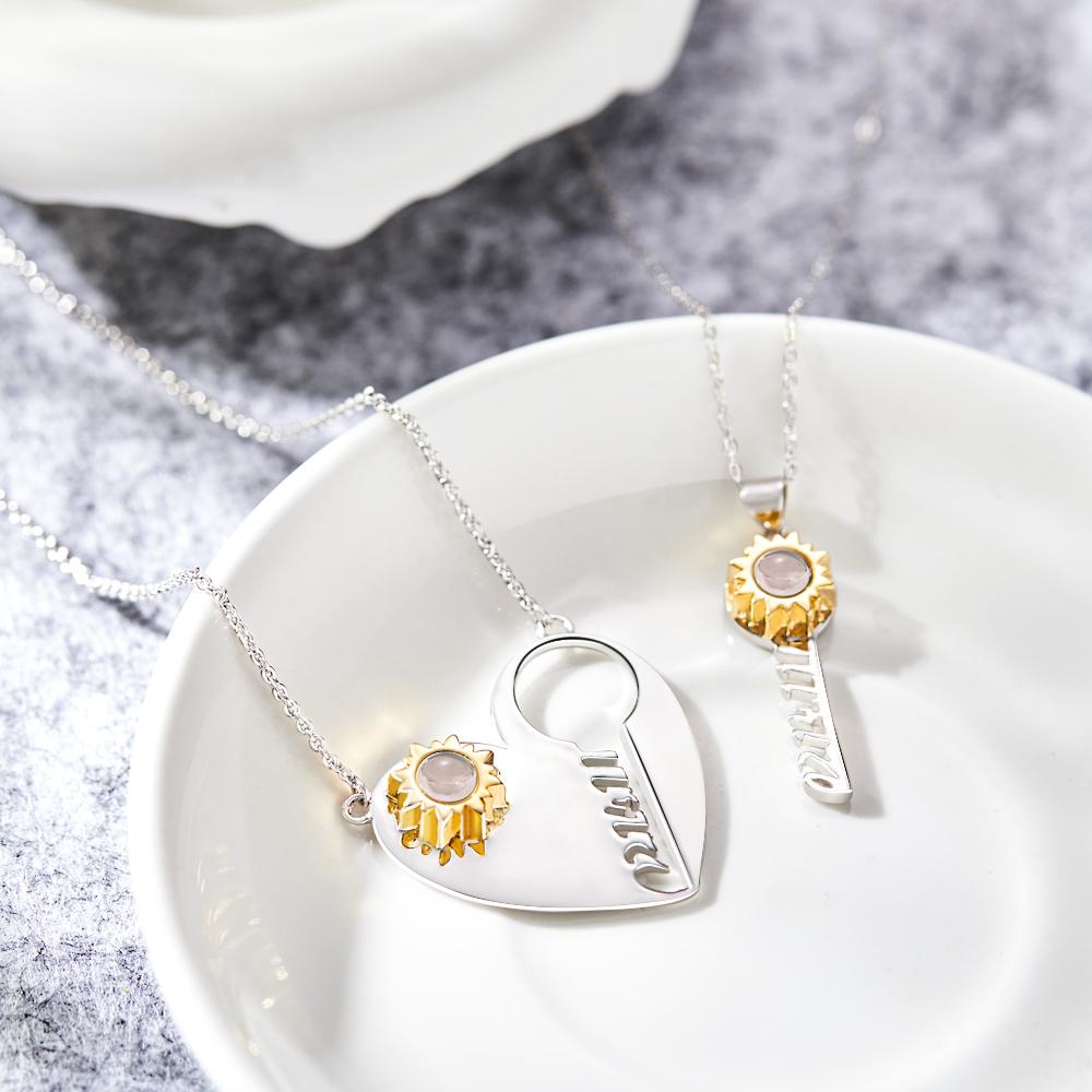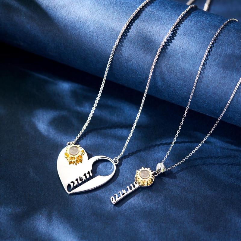 Kundenspezifisch Gravierte Projektionshalskette Kundenspezifischer Datumsschlüssel Von Herz-paar-geschenken