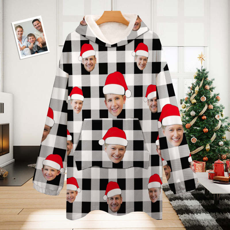 Benutzerdefiniertes Gesicht Erwachsene Unisex Decke Pyjamas Personalisiertes Foto Weihnachten Familie Buffalo Plaid Pyjamas Frohe Weihnachten