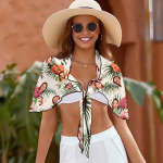 Benutzerdefinierter Gesichts Strandwickel Weiß Hawaiianischer Stil Kurze Sarongs Für Damen Geschenk Für Sie