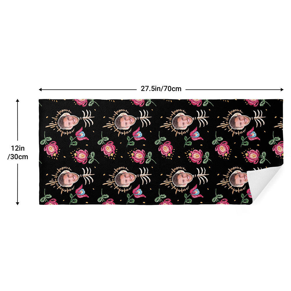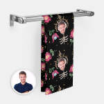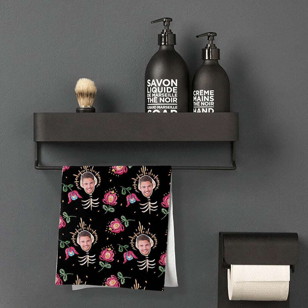 Benutzerdefiniertes Handtuch Mit Gesichtsknochen Und Blumen, Personalisiertes Fotohandtuch, Lustiges Geschenk