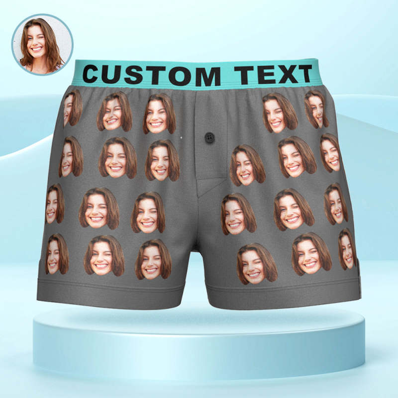Boxershorts Mit Individuellem Gesicht Und Personalisiertem Text Am Bund. Personalisierte Freizeitunterwäsche Für Ihn