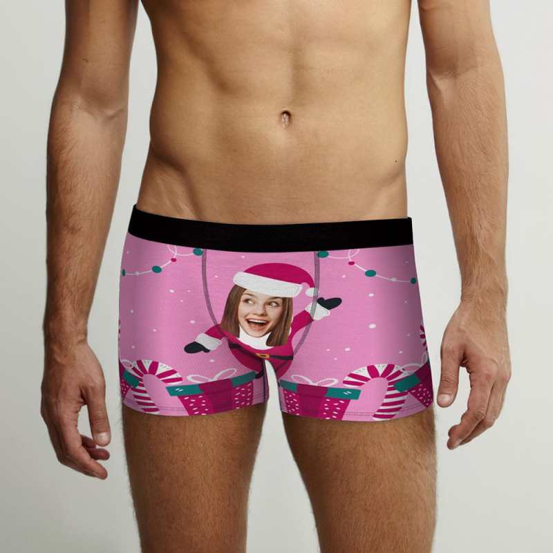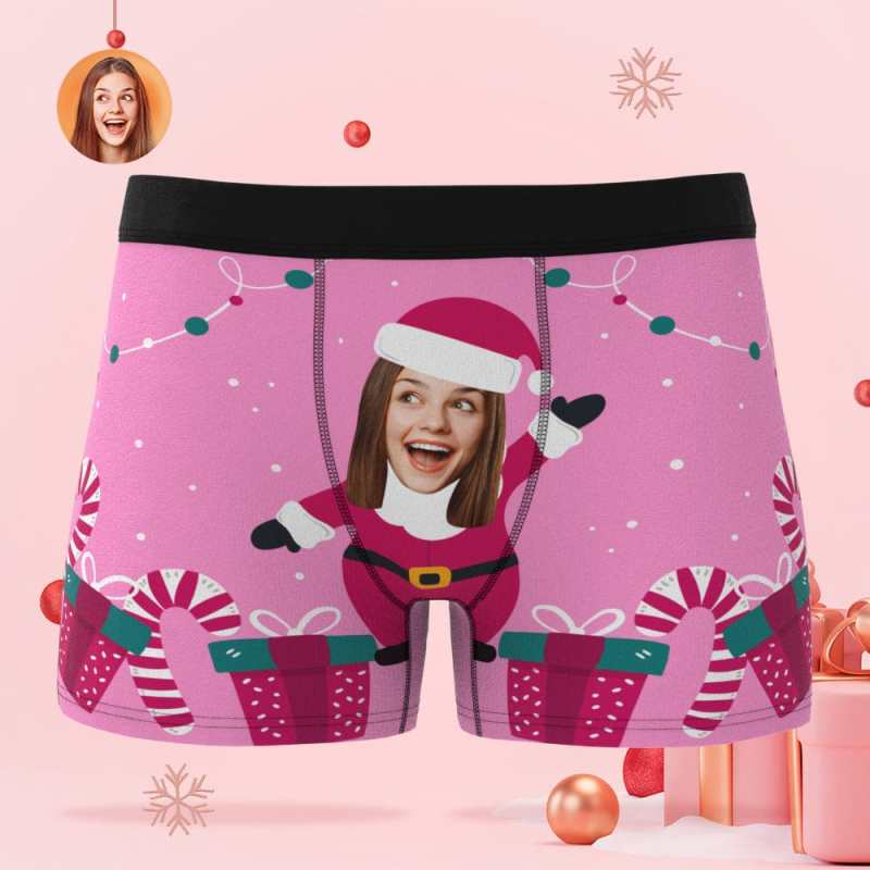 Personalisierte Boxershorts mit Weihnachtsgesicht Santa is Here Personalisiertes lustiges Weihnachtsgeschenk