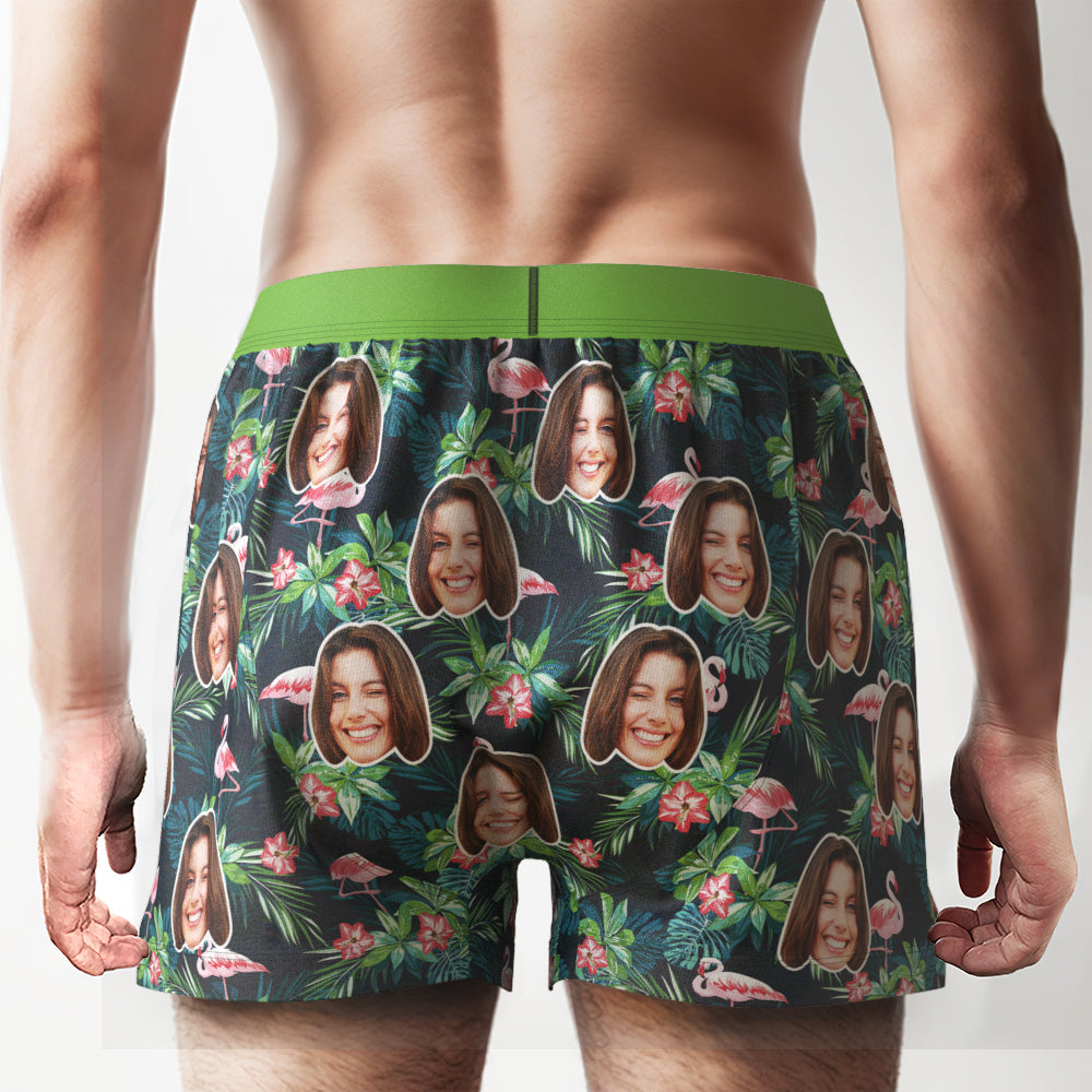 Boxershorts Mit Individuellem Gesicht Und Buntem Flamingo, Personalisierter Bund, Lässige Unterwäsche Für Ihn