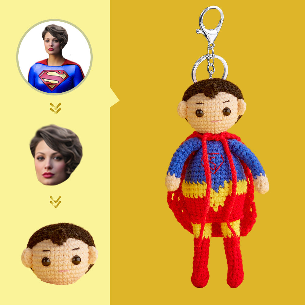 Häkelpuppe Mit Individuellem Gesicht, Personalisierte Handgewebte Mini-puppengeschenke – Supergirl