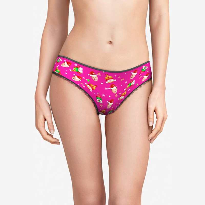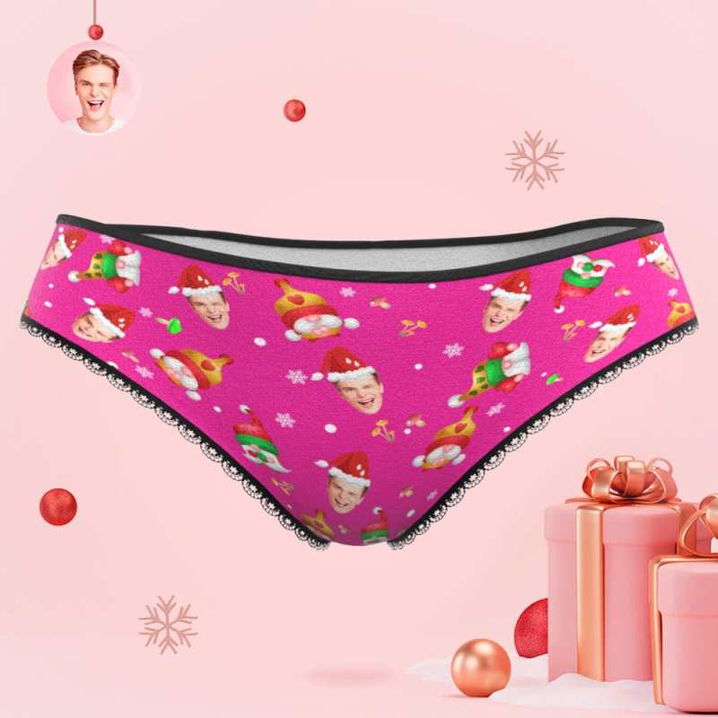 Personalisiertes Gesicht Happy Gnomes Rosa Weihnachten Damenhöschen Personalisiertes Rosa Weihnachtsgeschenk
