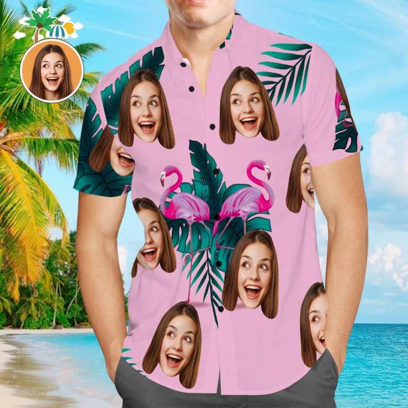 Kundenspezifischer Hawaiianer Mit Hundegesichts-lustigem Flamingo-ferien-strand-shirt-geschenk Für Haustier-besitzer