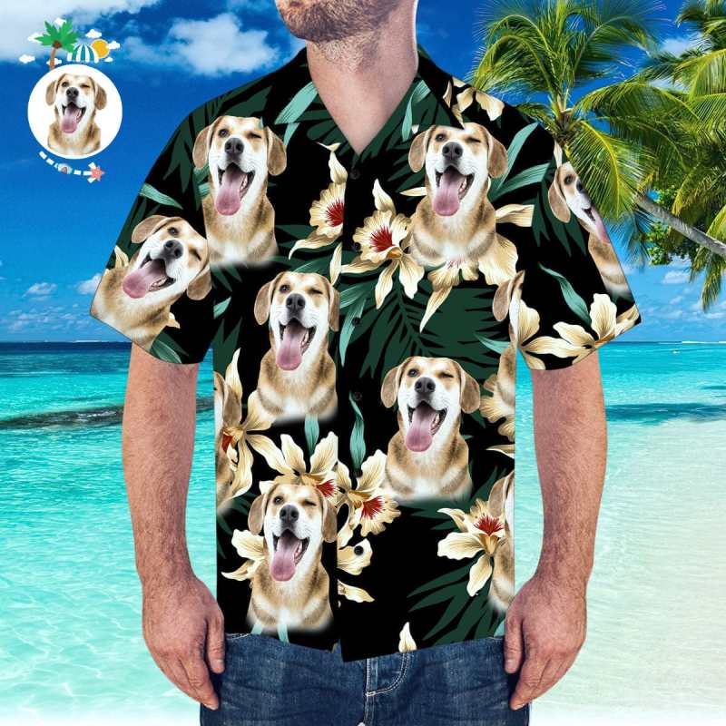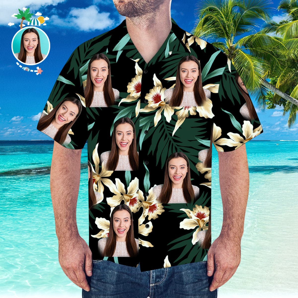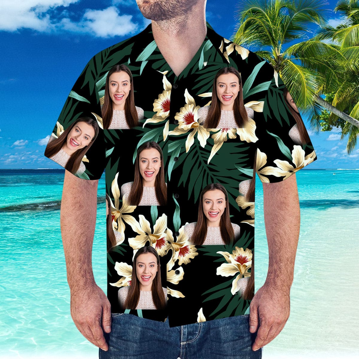 Benutzerdefiniertes Gesicht Hawaiihemd Blätter & Blumen Muster Hawaiihemd Für Sommergeschenk