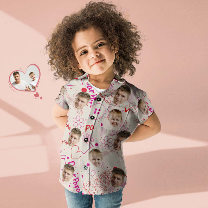 Setzen Sie Ihr Foto auf benutzerdefinierte Foto Hawaii-Hemd Eltern-Kind trägt.