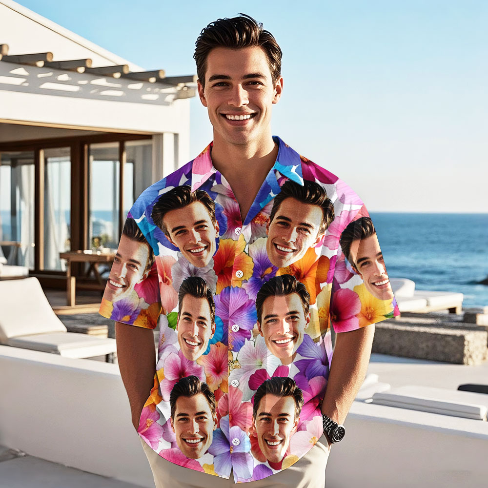 Benutzerdefiniertes Hawaiihemd, Sommer, Bunte Blumen, Aloha-hemd, Urlaub Für Herren