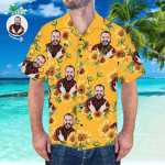 Kundenspezifisches Gesicht Hawaiihemd Sonnenblume Muster Hawaiihemd Für Strandparty