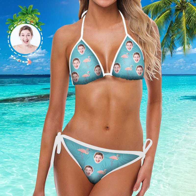 Passende Badeanzüge Für Paare Mit Individuellem Gesicht, Flamingo-blaue Badebekleidung Für Paare, Geschenk Für Verliebte