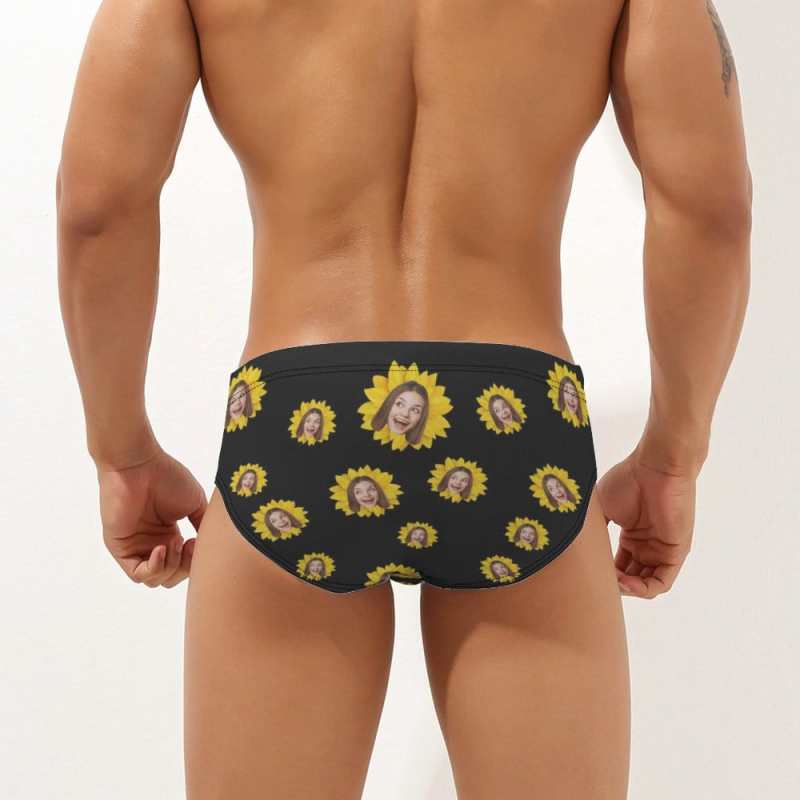 Custom Face Herren-badehose, Personalisierte Sonnenblumen-dreieck-badehose
