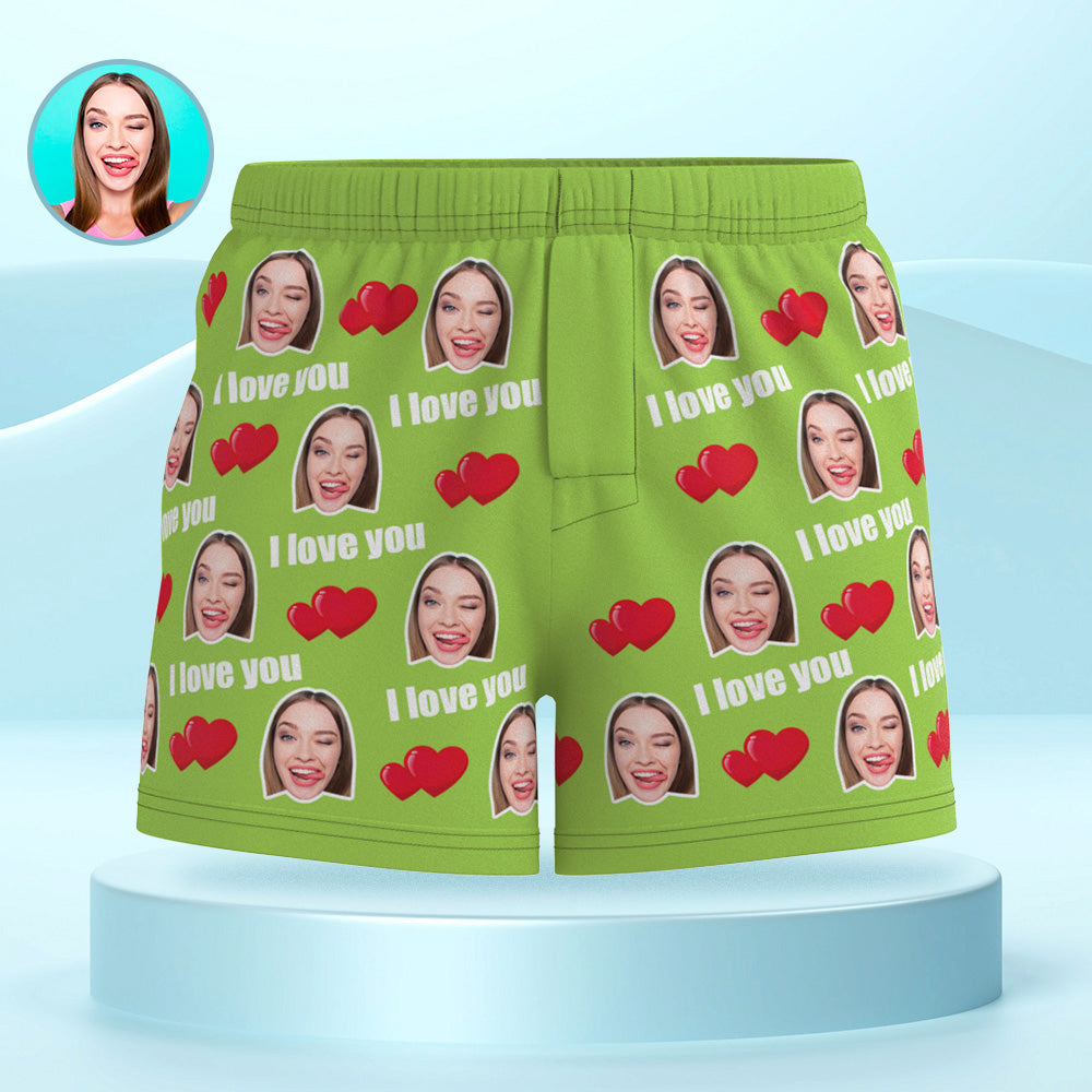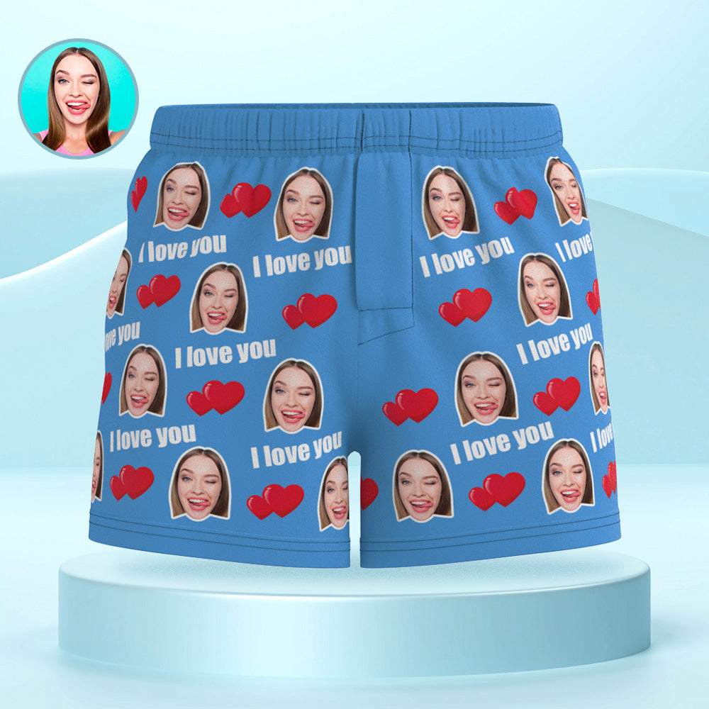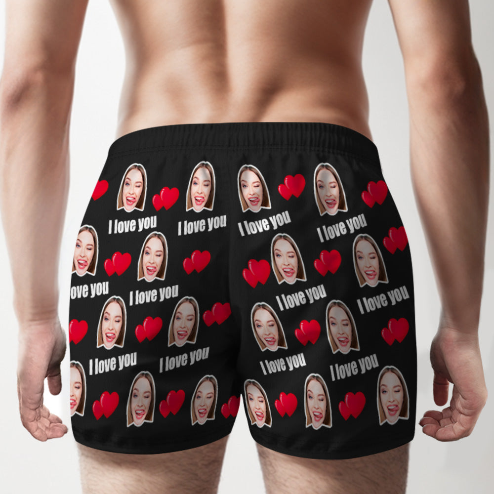 Personalisiertes Foto-unterwäsche-geschenk Für Ihn. Mehrfarbige "I Love You“-boxershorts Mit Individuellem Gesicht