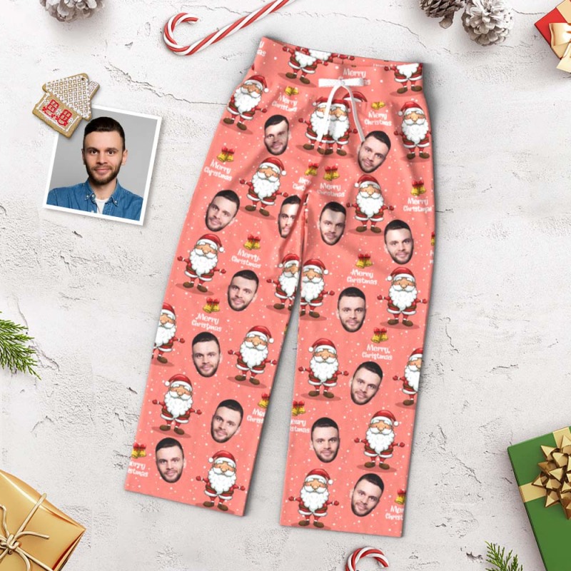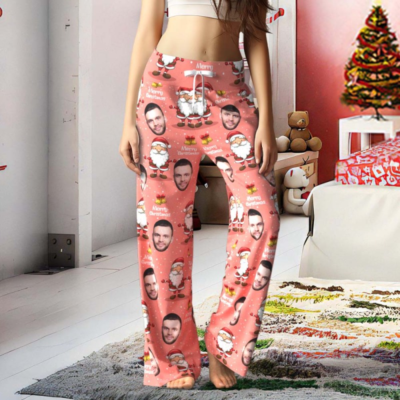 Benutzerdefinierte Gesichtshose. Lockere Damen-pyjamahose Mit Weitem Bein. Frohe Weihnachten