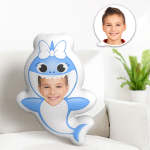 Benutzerdefiniertes Gesichtskissen Mini Me Dolls Blauer Hai, Personalisierte Fotogeschenke Für Jungen